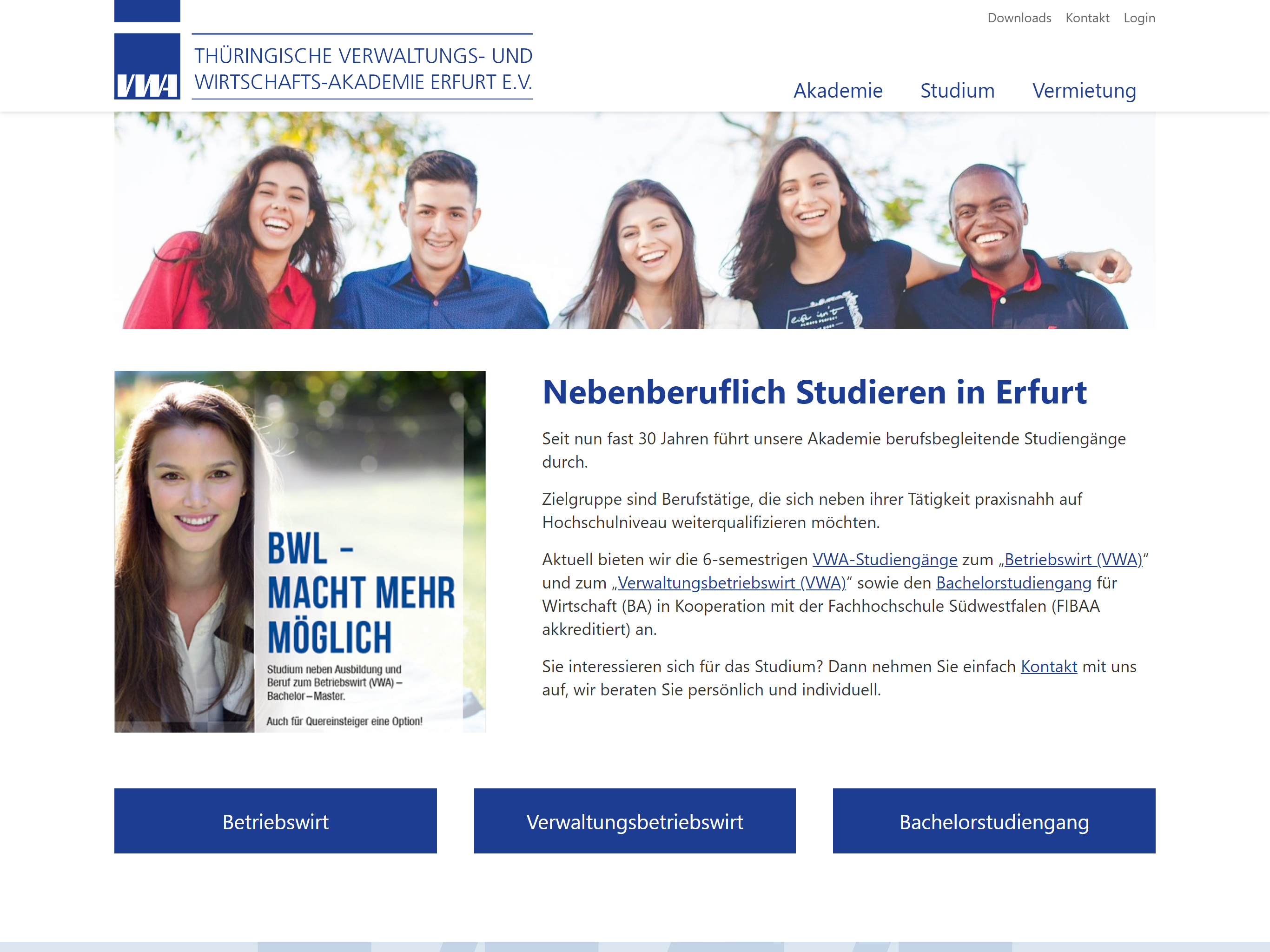 Die Thüringische Verwaltungs- und Wirtschafts-Akademie (VWA) Erfurt e.V. bietet nebenberufliche, praxisnahe Studenangebote.