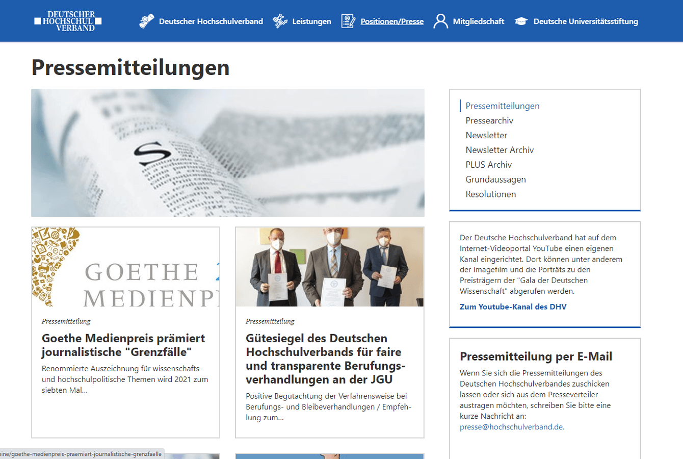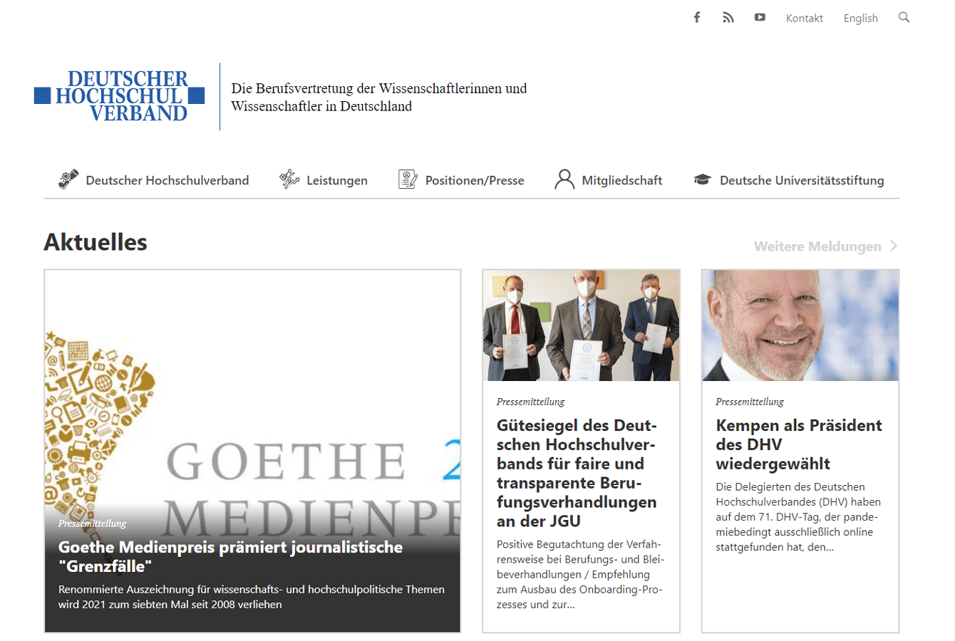 Der Deutsche Hochschulverband, die berufliche Vertretung von Wissenschaftlern und Wissenschaftlerinnen in Deutschland, hat seinen Webauftritt grundlegend erneuert.