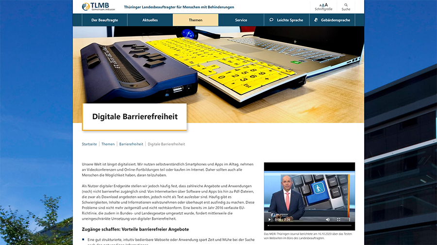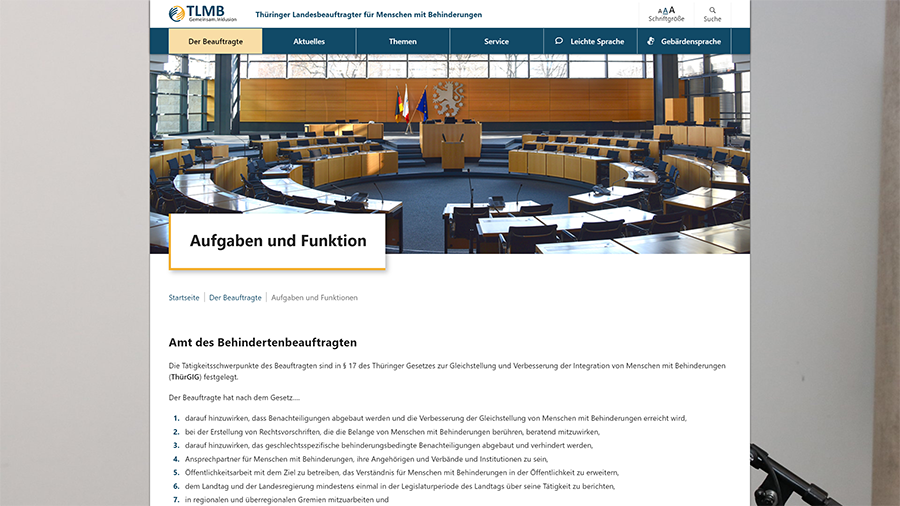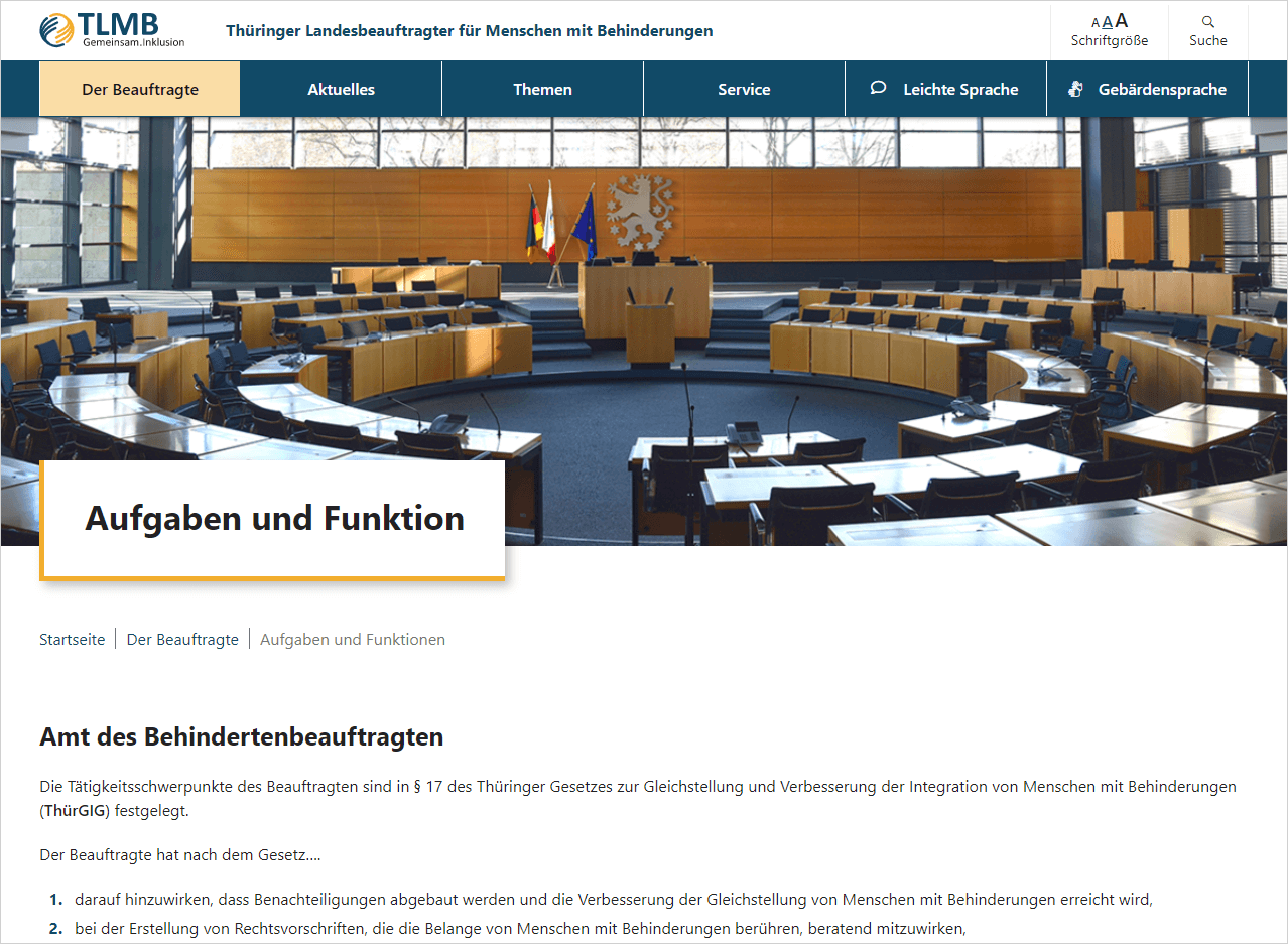 Die Website des Thüringer Landesbeauftragten für Menschen mit Behinderungen (TLMB) wurde auf Grundlage des TYPO3 CMS vollständig neu aufgebaut.
